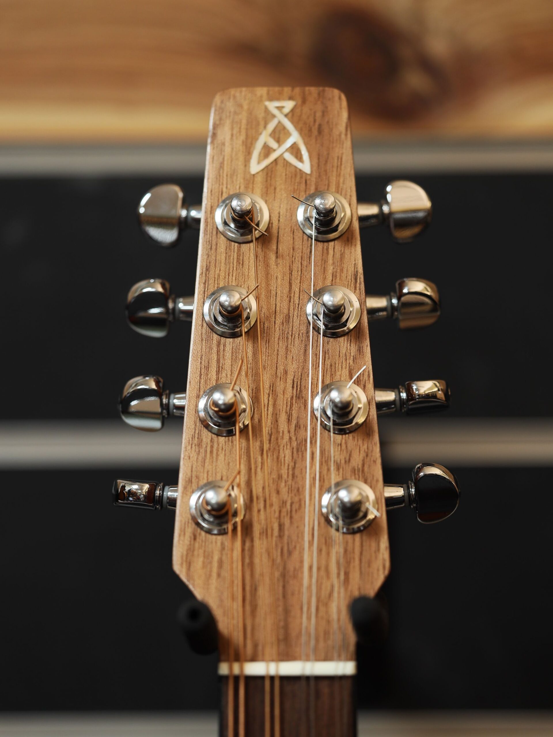 - Senna Siamea bound body with 3ply wood rosette. Strung with D’Addario EXPs