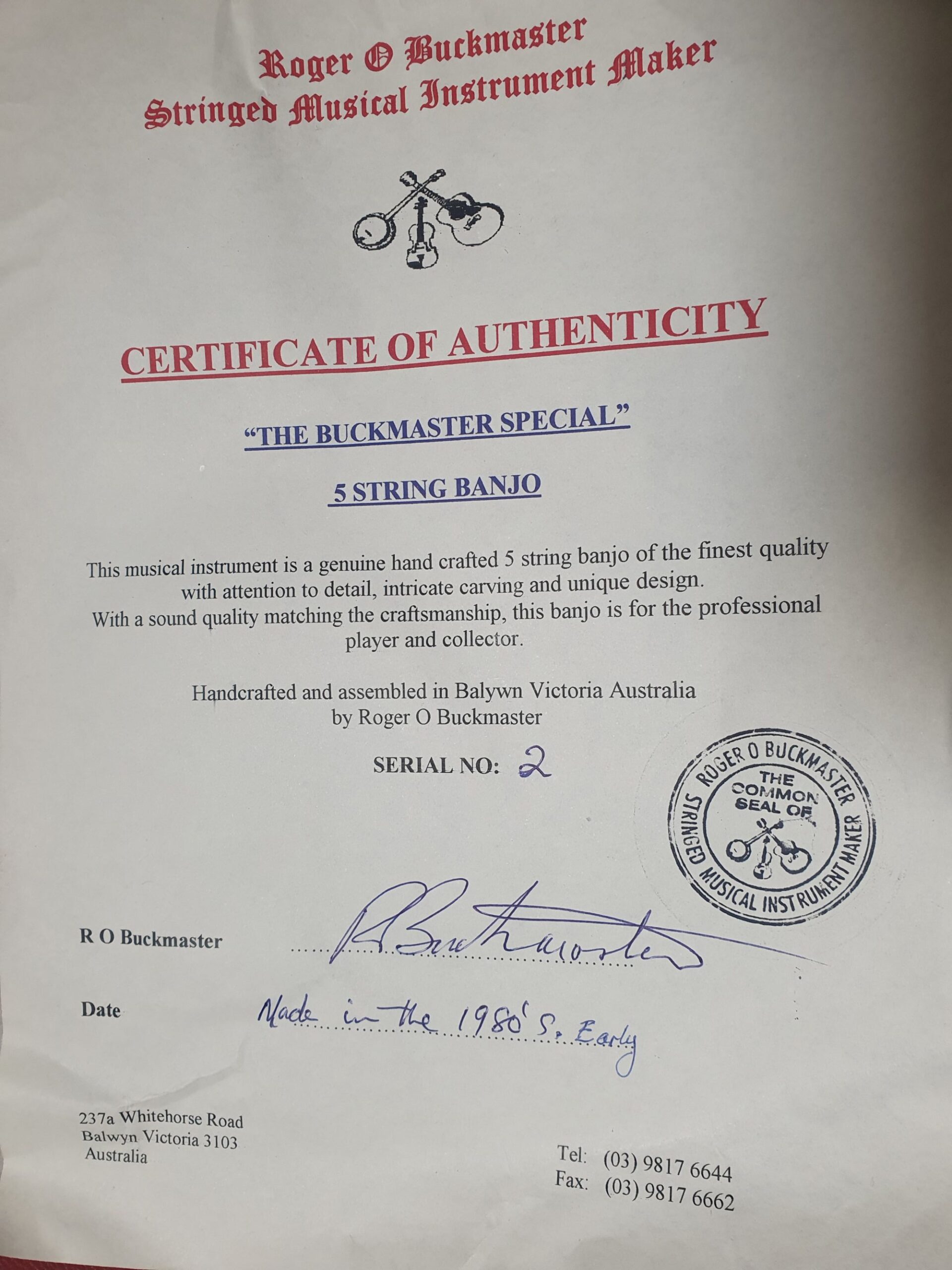 The case is good and it comes with the original paperwork supplied by Roger back in the eighties. It’s a piece of Australian banjo history.