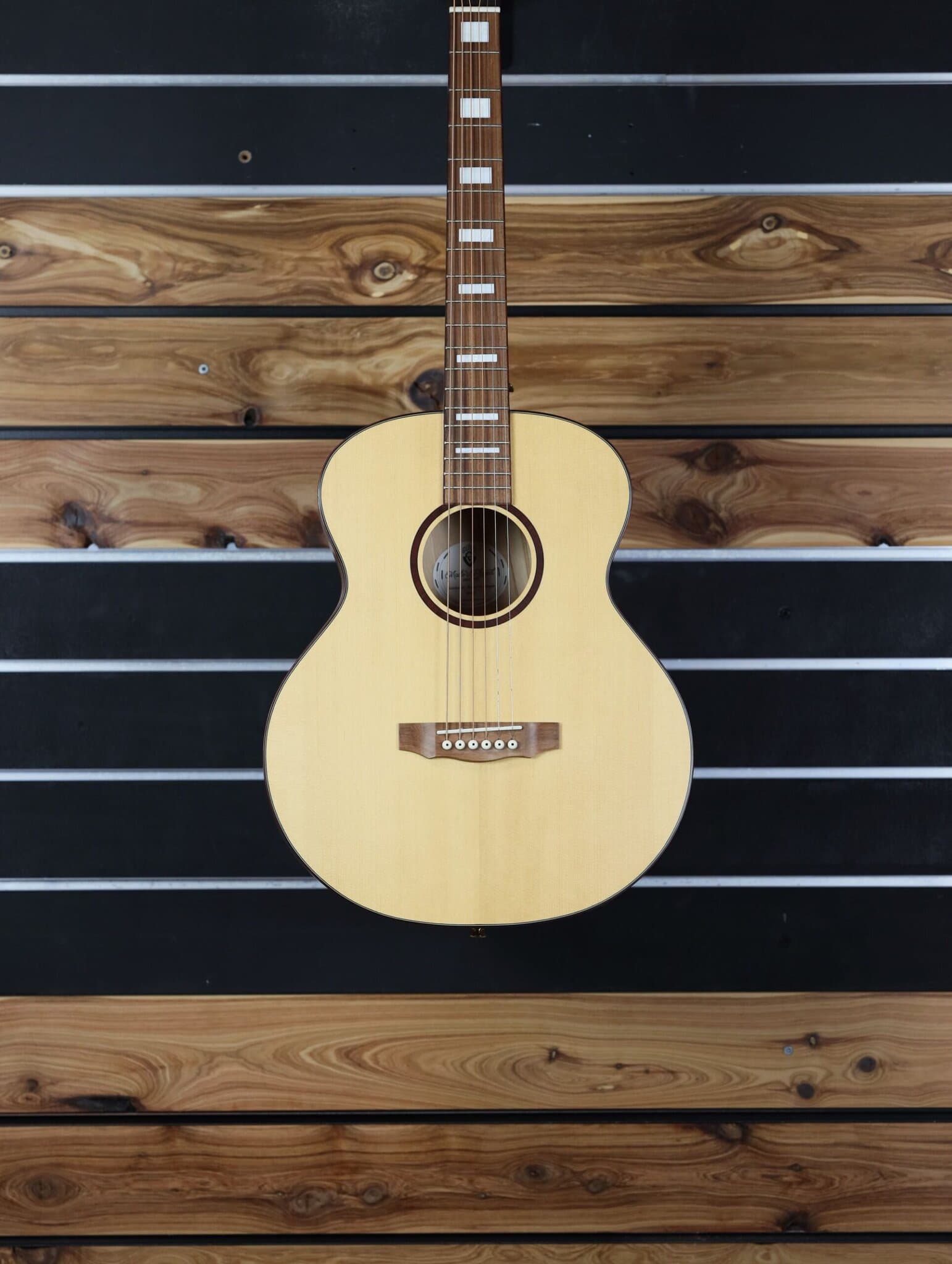 Short scale length guitars can be a little underwhelming but the Guild Mini Jumbo does a great job of of putting out a lot of sound for it’s size. With a solid spruce top and arched flamed maple back the sound just seems to jump out at you.