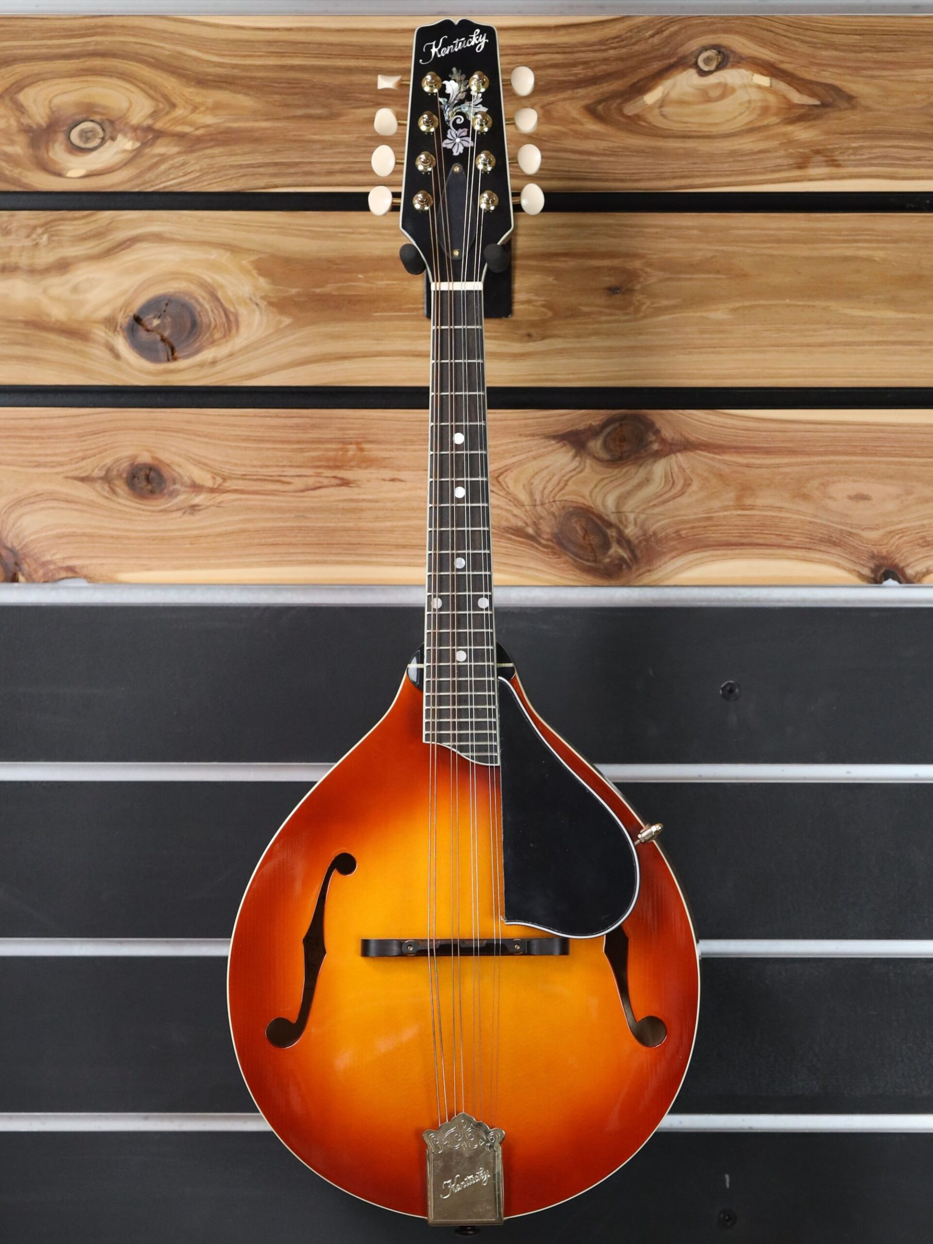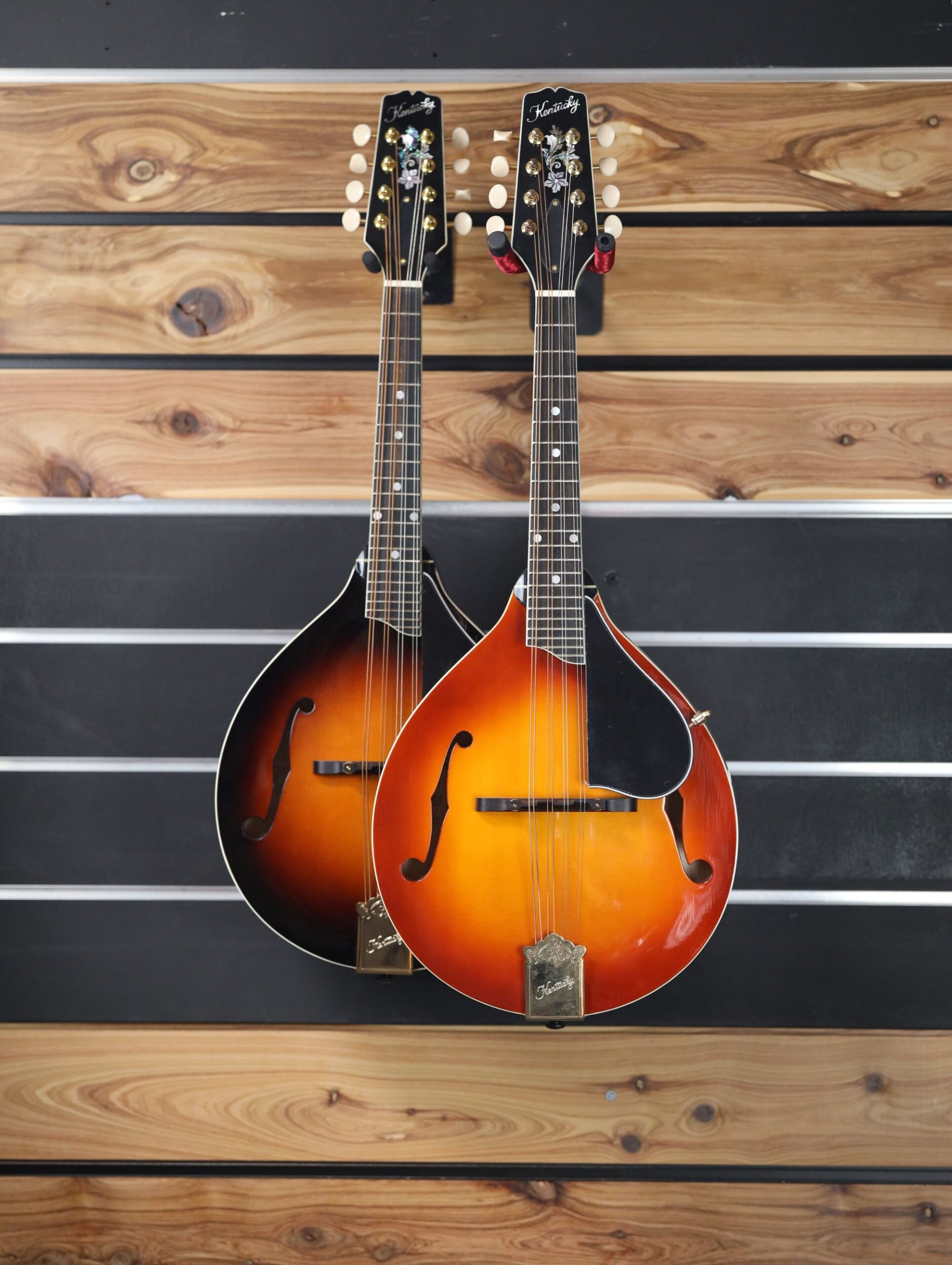 The KM-500 range consist of traditional sunburst and a golden burst. These mandolin have more flamed maple in their construction and also have higher grade machine heads and other fittings. After the 500 range you start to move into scroll models but with the additional work involved it will increase in price.