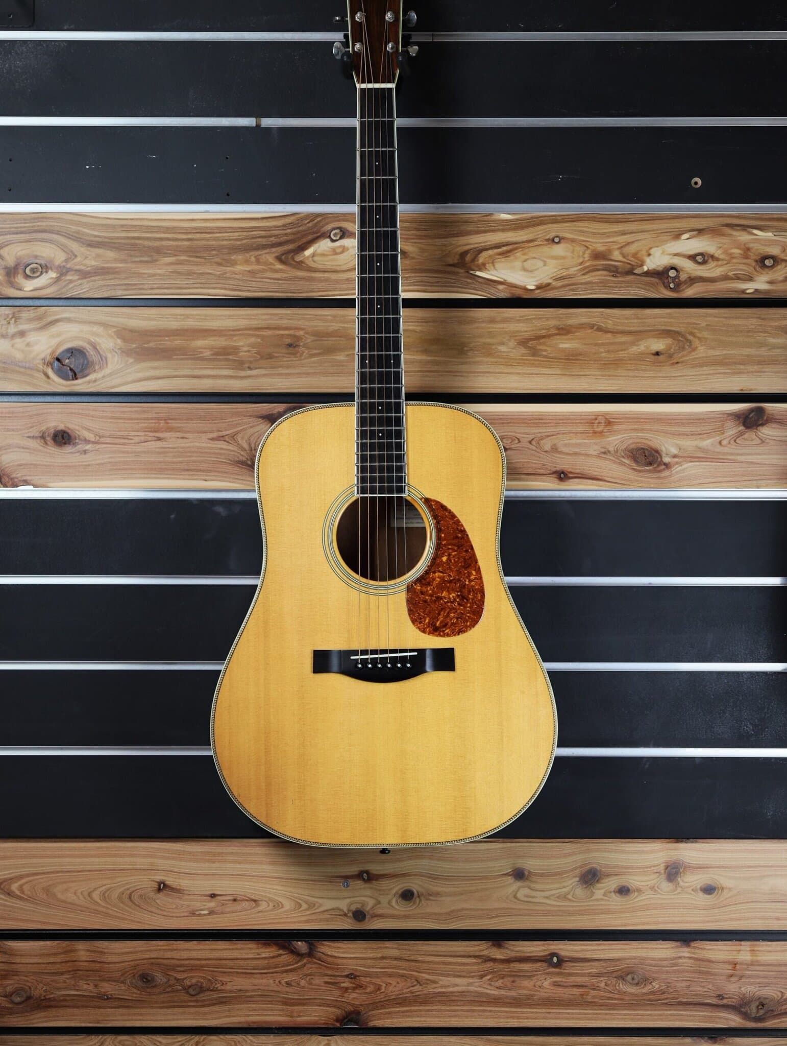 This Santa Cruz VA is in great condition and is noticably very lightweight. That may go some way towards explaining why it sounds so good. The forward scalloped X-braced top has been finely tuned and so gives the guitar a very balanced tone with no dip in the mid-range that some dreadnaughts have as part of their sound. Great for rythm styles but maybe not so ideal for solos all across the fretboard. Tony Rice certainly liked the Santa Cruz sound.